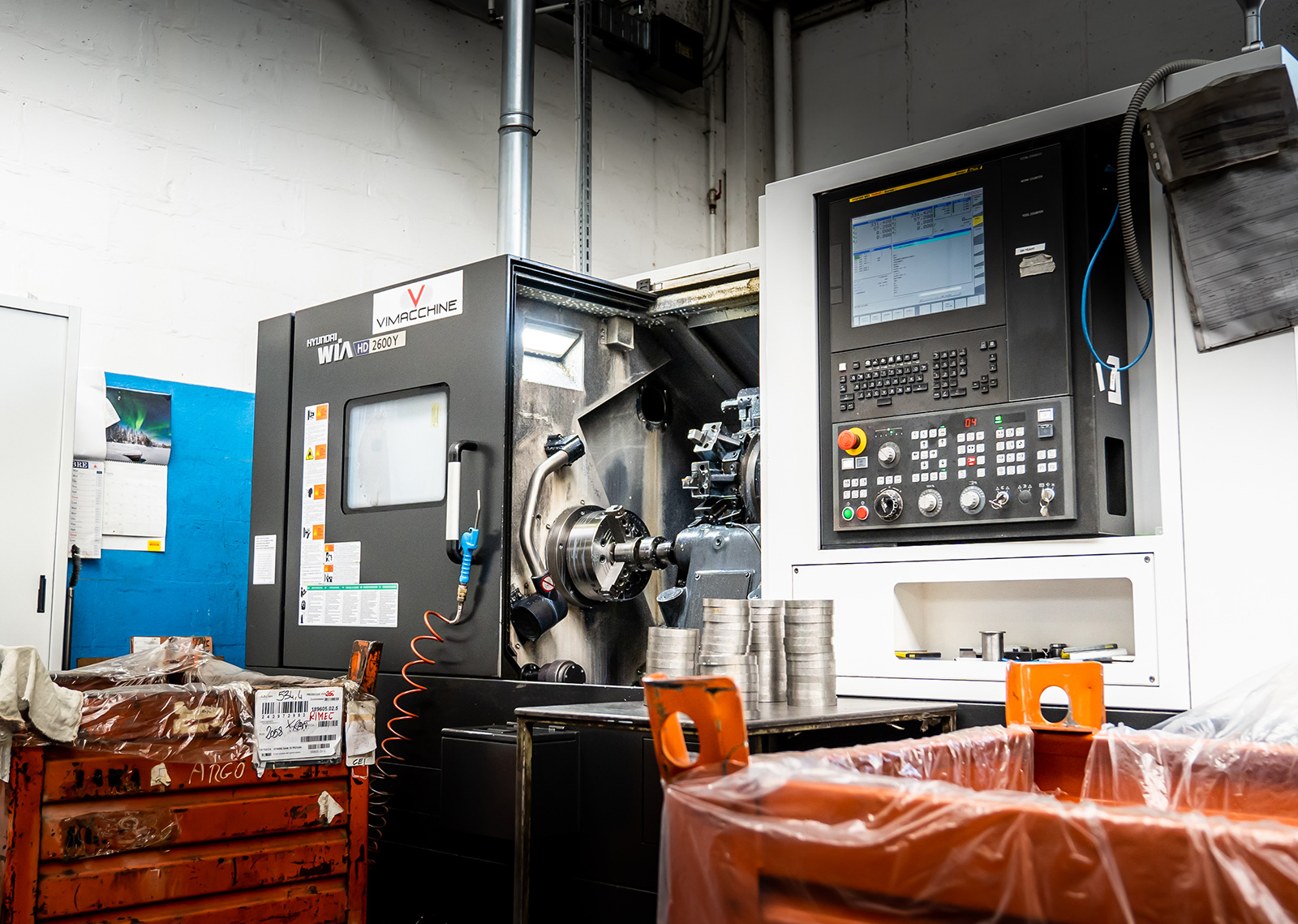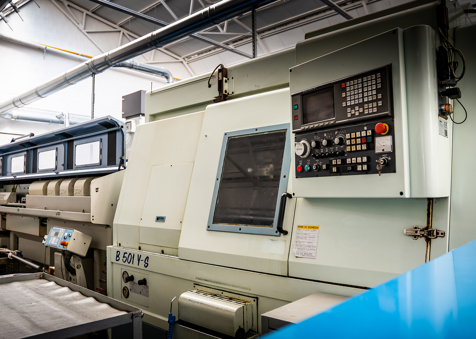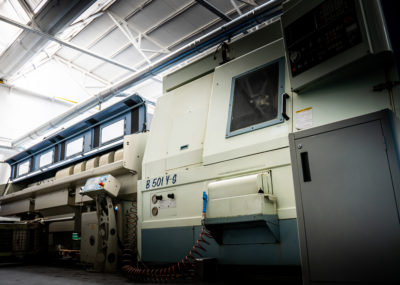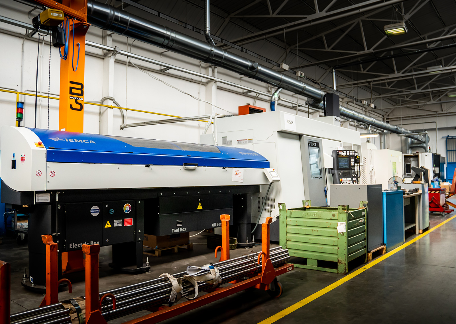 Atteignant le département de tournage, il y a la zone d'équipement, composée de : tours parallèles exposés, fraiseuses, meuleuses, machines de soudage, machines à ligaturer et perceuses à colonne. Rimec a toujours poursuivi une gestion rigoureuse de ses équipements, consciente que cela permet, en plus de réaliser des économies considérables sur les coûts des composants d'usure, d'augmenter grandement l'efficacité opérationnelle de l’usine.